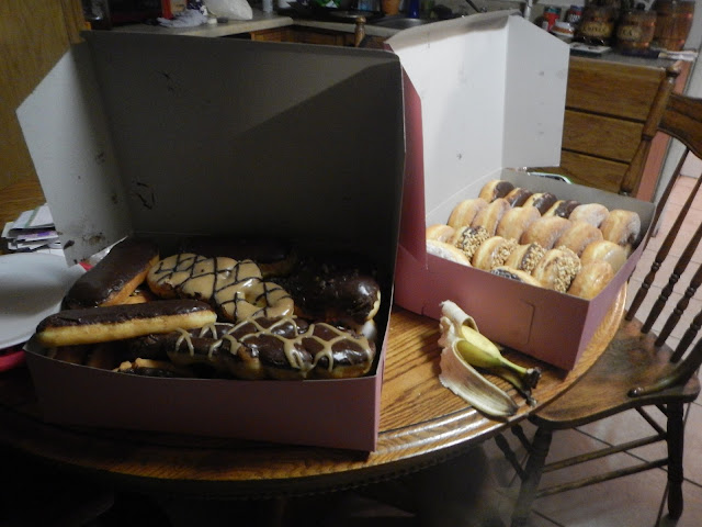 Now this was a grand occasion - thank you so much to Papa Smurf who puts on this amazing feast every morning when Hikers are present. We chowed down on doughnuts, pancakes, mini burgers, buttered potatoes, mini sausages in scrambled eggs, toast, orange and apple juice, coffee and tea.......